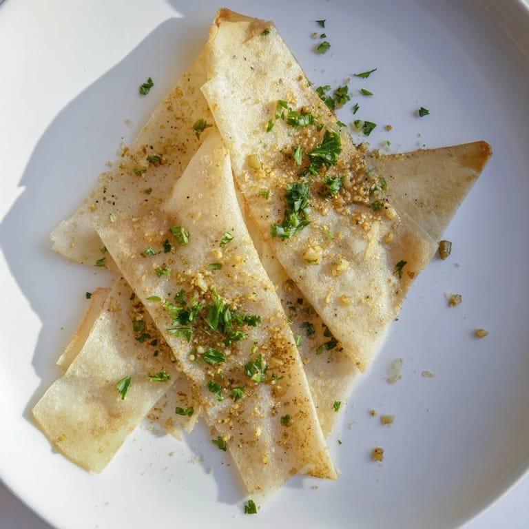 If you somehow manage not to eat them all in one sitting, store the chips in an airtight container at room temperature. They'll stay crispy for up to two days, though they're honestly best within the first few hours. You can prep the sliced wrappers ahead of time and keep them in a sealed bag, then toss them in the garlic oil and fry whenever you're ready.
