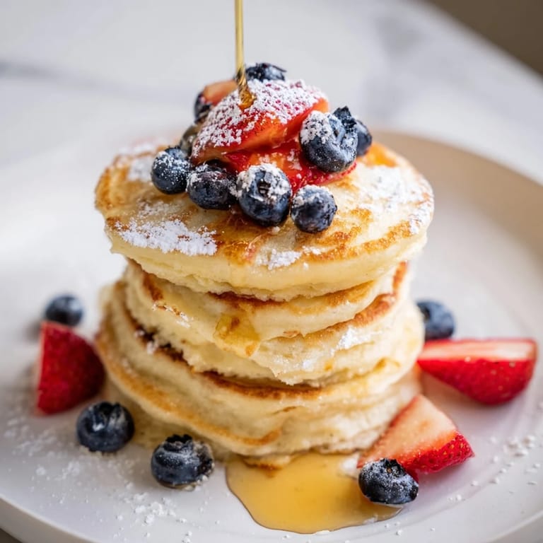 Pin It Light, airy pancakes featuring creamy ricotta, perfect for a relaxing weekend brunch with family or friends.