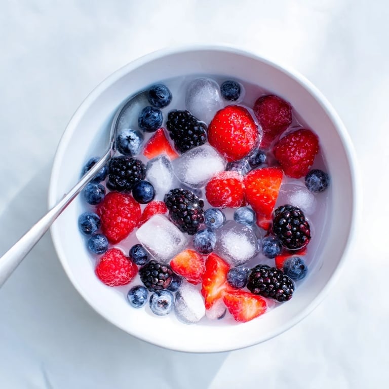 - Nestle ice cubes among the berries, listening for that satisfying clink against the bowl. The ice not only keeps everything refreshingly cold but also releases water slowly as it melts, creating an ever-changing flavor experience.