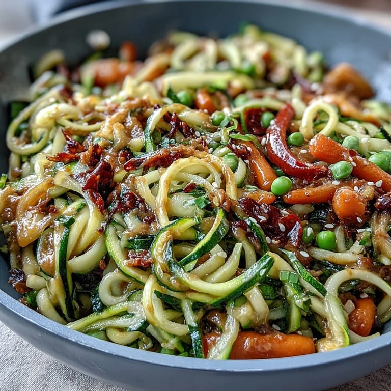 Pin It My spiralizer arrived on a Tuesday, and I spent that entire evening circling my kitchen like it was a brand new toy, waiting for the right moment to use it. When Thursday rolled around and I had half a dozen zucchinis from the farmers market getting soft on my counter, something clicked—I could make this light, tangy stir-fry that actually tastes like you're treating yourself, not punishing yourself. The peanut sauce is what makes it sing; it's creamy and rich but doesn't weigh you down, and somehow everything comes together in the time it takes to brew a cup of tea.